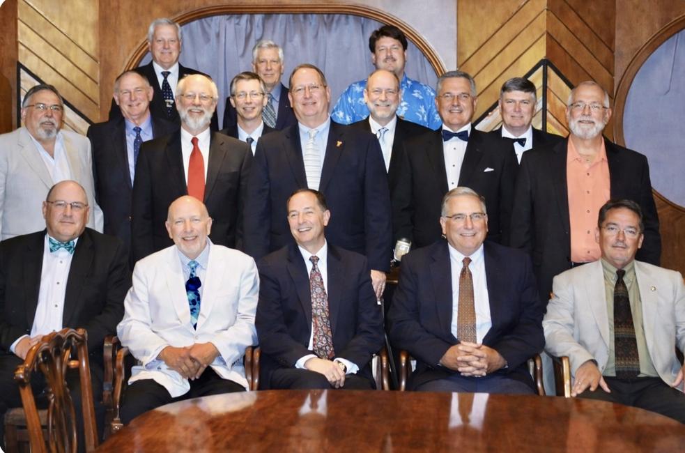 2018 Roster Standing L.- R. : Dick Winkler, Harry Yates , Juan Alvarado, Tom Thompson, Dan Thomason, Gary Moore, Walt Caldwell, Ron Sledge, Stan Nelms, Joe Horstkamp, Richard Thompson, Jerry Ables,Paul Dieterle, Rob Roy, Kneeling L. - R. : Mark Dowling, Paul Lam, Roy Geilen, Ron Bonnin, John Sipe, Phil Olson, Fred Schultz, Gene Petrowski